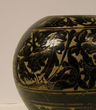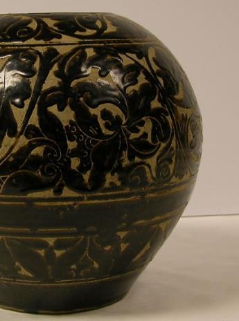 磁州窑黑釉剔花花卉纹罐
