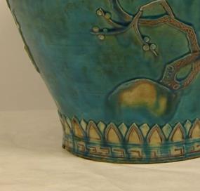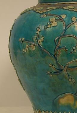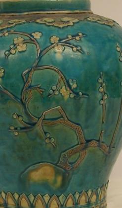 珐华彩浮雕梅花纹罐
