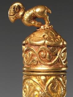金质羊首分段式护身符盒