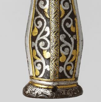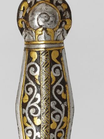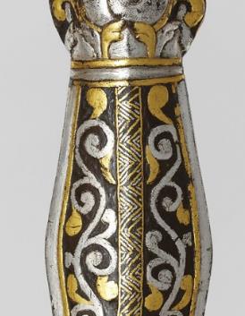 在元代,镀金银剑柄的兵器多为贵族或高级将领所拥有,是身份和地位的象征。只有地位较高的人才能佩戴装饰华丽的兵器,以彰显其尊贵身份和财富实力。元代是一个多民族融合的朝代,其镀金银剑柄的工艺和装饰风格既继承了中原地区的传统金属工艺,如错金银、鎏金等技法,又融合了蒙古等游牧民族的文化元素。这种文化融合体现了元代多元文化相互交流、相互影响的特点。