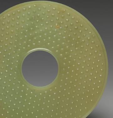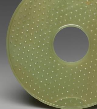 战国时期 “礼崩乐坏”,周天子权威衰落,但诸侯仍沿用 “玉璧” 作为祭祀天地、朝聘诸侯的礼器 ——《周礼・春官・大宗伯》记载 “以苍璧礼天”,青玉(苍色)正符合 “礼天” 的色彩要求,因此乳钉纹青玉璧常作为诸侯国祭祀天帝的核心礼器;同时,玉璧也成为 “等级象征”,卿大夫以上贵族才能使用,乳钉纹的数量、玉璧的尺寸均与使用者的身份挂钩。