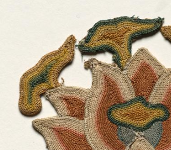 明代彩绣莲花云纹绣片