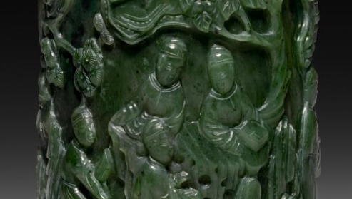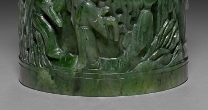 清代碧玉浮雕人物故事纹笔筒