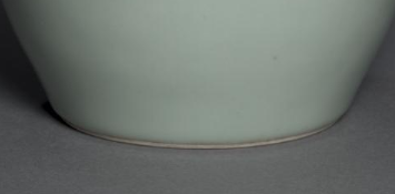 本品规格为直径16.6厘米,高度18.9厘米。造型为圆润罐形,小口、短颈、丰肩、鼓腹、圈足。通体施粉青釉,釉质莹润细腻,色泽淡雅柔和,如春日新芽般清新。胎体规整,工艺简洁大方,尽显清代单色釉瓷器追求的素净之美,既具实用储物功能,又以温润釉色与简洁造型展现古典审美,是清代粉青釉瓷器中体现简约工艺与雅致韵味的典型器物 。