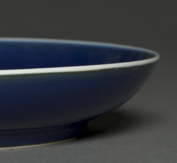 在清代时,在宫廷中, 霁蓝釉盘会作为餐具使用, 用于盛放菜肴、 点心等食物。 虽然霁蓝釉庄重肃穆, 但因其制作精美、 品质上乘, 也符合宫廷对饮食器具高品质的要求, 在一些日常或特殊的宫廷宴会上, 都可能出现它的身影 。