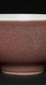 本品规格为直径7.3厘米,高度3.5厘米。敞口,弧壁,圈足。外壁施豇豆红釉,釉色温润,呈现出深浅交融的淡紫红色,似豇豆色泽,其间散布不规则斑点,尽显 “美人醉” 独特韵味;内壁施白釉,洁净莹润。胎质细腻,造型规整,工艺精湛,是清代康熙时期豇豆红釉瓷器的典型代表,体现单色釉瓷的审美与制瓷高超技艺 。