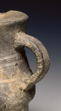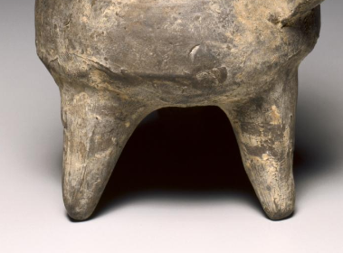 本品规格为直径11厘米,高度12.8厘米。三足鼎立,器身呈束颈鼓腹形态,一侧单耳便于持握,口部出流(虽有残损仍可辨功能),符合鬶类 “注酒 / 水” 的实用器型逻辑,体现商代陶器为生活、礼仪服务的设计。以灰陶为胎,表面因岁月侵蚀显斑驳土锈,呈现沉稳灰调,是商代陶器常见的 “素朴” 质感,也见证埋藏千年的历史痕迹。