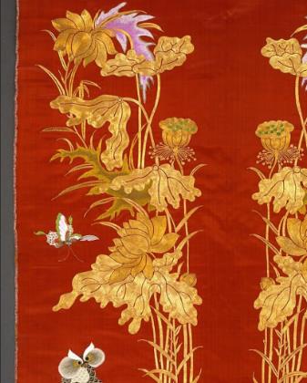 清代广绣以广州为中心,融合中原刺绣技法与岭南本土审美,形成 “构图饱满、针法多变、色彩富丽” 的特色。雕版印刷术的成熟使纹样设计标准化,而造纸术的进步(如皮纸、竹纸的普及)为绣稿提供了优质载体。外销需求促使绣工吸收西方洛可可艺术元素,例如将猫头鹰(西方智慧象征)与中国荷塘结合,既符合本土吉祥寓意,又满足海外猎奇心理。