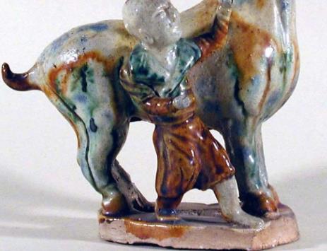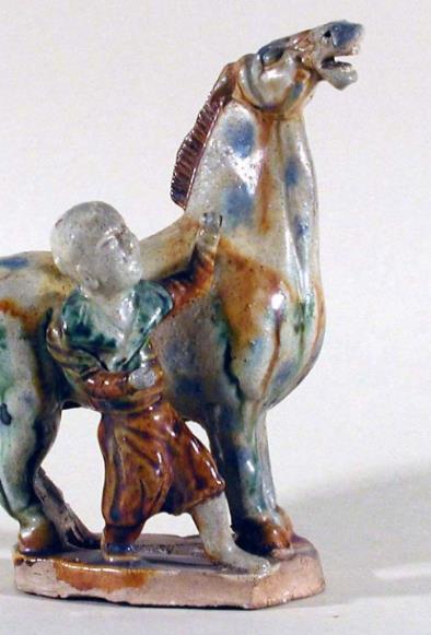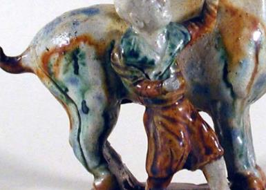三彩童子牵马雕件