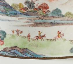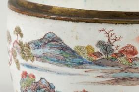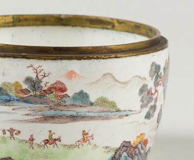 铜胎画珐琅山水图盒盖缺