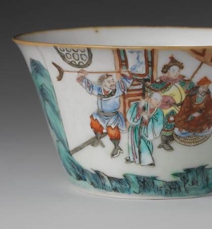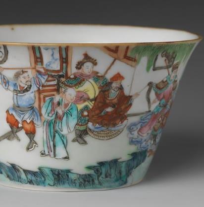 粉彩刀马人物马蹄杯