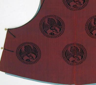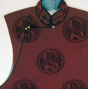 按衣长可分为大坎肩和小坎肩,大坎肩衣长过膝,显得庄重挺拔,小坎肩衣长及腰,较为活泼娇俏。按衣领形式可分为对襟坎肩、一字襟坎肩、琵琶襟坎肩、大襟坎肩等。其中,一字襟坎肩因前襟于胸部横开,外观呈 “一” 字形而得名,最初为清代武将骑射时所穿,又称 “巴图鲁坎肩”;琵琶襟坎肩的衣襟线条上部与大襟相似,右襟下部缺一块,是清代出现的新式坎肩。