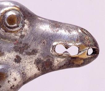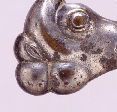 战国对兽纹青铜牌饰多为长方形或横放的 “B” 形,如宁夏博物馆收藏的 “虎噬驴” 透雕铜牌饰,长 13.7 厘米、宽 8.2 厘米,整体造型为横放的 “B” 形。牌饰一般采用浮雕或透雕工艺,