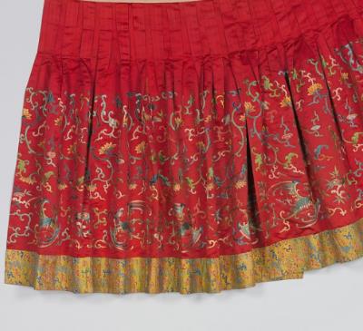 清代是中国戏曲发展的鼎盛时期,京剧、昆曲等剧种盛行,戏曲服饰的制作也日益精细。百褶裙戏服作为戏曲服装的重要组成部分,随着戏曲艺术的发展而不断演变,其款式和装饰逐渐形成了一套独特的规范和体系,以满足不同角色和剧情的需要。