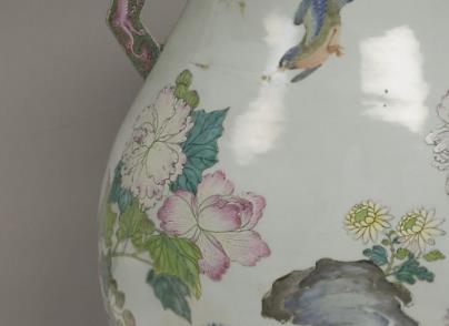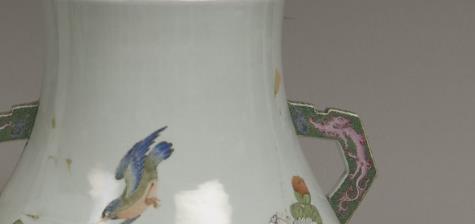 粉彩花鸟纹龙耳尊