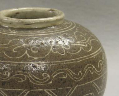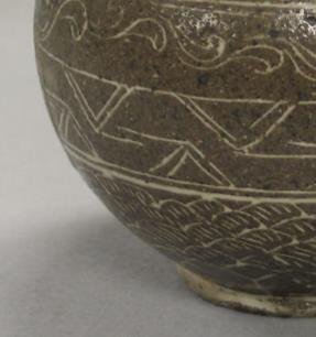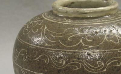 酱釉刻花罐