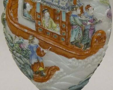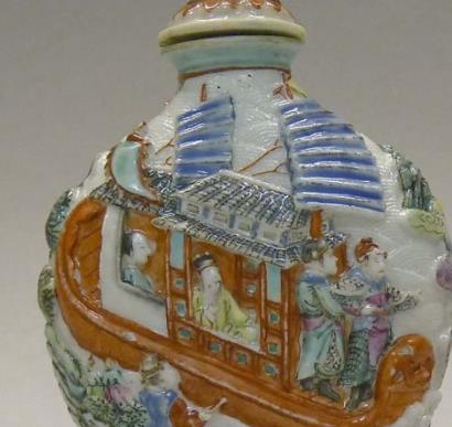 粉彩堆塑人物鼻烟壶