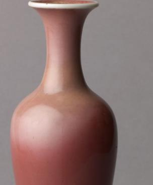 釉面并非均匀一色,而是呈现 “深浅交织” 的渐变感 —— 主体为柔和的淡粉红色,其间点缀深红(称 “晕散”)、浅绿(称 “苔点绿”),红色如晚霞映水,绿色似春草凝露,反差中透着雅致,是铜红釉在窑火中自然窑变的结果,无法人工精准控制。