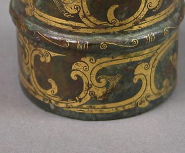 主体以青铜铸造,合金成分多为 “铜 - 锡 - 铅” 三元体系(含锡量约 10%-15%),既保证了构件的硬度(适应车马行驶中的摩擦与冲击),又具备一定韧性(避免受力断裂),体现了战国青铜合金技术的成熟。错金纹饰是区分配件等级与所属贵族身份的关键,整体风格受战国 “蟠螭纹、蟠虺纹、云纹” 等主流纹饰影响,同时融入地域特色: