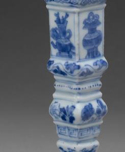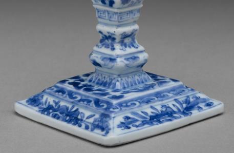 清代是青花瓷发展的 “鼎盛后期”,尤其康熙至乾隆时期,民窑青花瓷生产规模空前 —— 一方面,制瓷原料(如浙料、珠明料)的开采与运输更便捷,成本降低;另一方面,民窑工匠积累了丰富的青花绘制经验,能将 “高雅题材” 转化为 “平民化装饰”,使青花瓷从 “陈设器”“礼器” 走向 “日常实用器”。青花四方台灯架正是这一趋势的产物:它不再是单纯的 “观赏瓷”,而是结合了 “照明功能” 的 “实用瓷”,体现了清代民窑 “以需定产” 的特点 —— 随着清代民间 “室内照明需求” 的提升(如夜晚读书、劳作、生活),陶瓷灯具(早期为烛台,晚清为电灯架)成为民窑的重要产品品类,而青花瓷的 “美观性” 又让它超越了普通陶制灯具,成为 “实用与审美结合” 的器物。