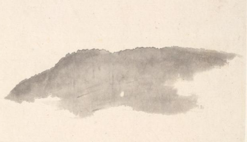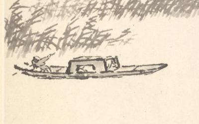 本品规格为29 x 18.4 厘米。画面采用了留白与笔墨相结合的方式,布局疏朗有致。上方描绘出形态简约的云雾与远山,营造出悠远的空间感;中部大面积留白,突出江面的开阔;下方江渚处,几笔勾勒出岸边的石头和草,简洁而生动。江中一艘行舟,虽描绘简略,但舟的形态、位置恰到好处,成为画面的视觉中心之一。运用了传统的水墨画技法,墨色浓淡变化自然。画云雾与远山时,以淡墨晕染,表现出朦胧缥缈之感;描绘江渚、石头和草时,墨色稍重,线条简洁有力,展现出物体的质感和轮廓。画舟的笔触则更加精炼,寥寥数笔便将舟的形象呈现出来,体现出画家对笔墨的娴熟掌控。