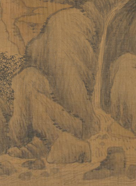 本品规格为41.2 x 31.5 厘米。以浅褐绢为底,绘就山水图景。右上题诗,墨韵古朴。画面中,山峦巍峨,以水墨皴擦展现雄浑质感,翠谷间飞瀑流泉,似传潺潺水声。山脚林木葱郁,屋舍隐现,营造出清幽静谧的氛围,尽显文人寄情山水的意趣,是研究翟大坤山水画风的典型之作 。