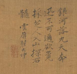 清代翟大坤绢本水墨山水题诗轴-飞瀑