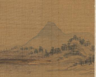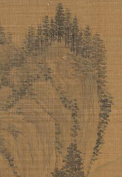 本品规格为41.2 x 31.5 厘米。以浅褐绢为底,绘江畔静舍之景。右上题识,墨韵古朴。画面中,江畔山峦巍峨,树木萧疏,静舍隐于林麓,江波浩渺悠远,以水墨皴染营造出宁静闲适意境,尽显文人寄情山水、向往幽居的意趣,是研究翟大坤山水画风的典型之作 。
