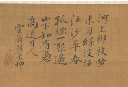清代翟大坤绢本水墨山水题诗轴-柳岸平沙