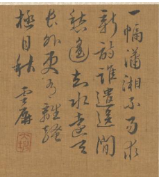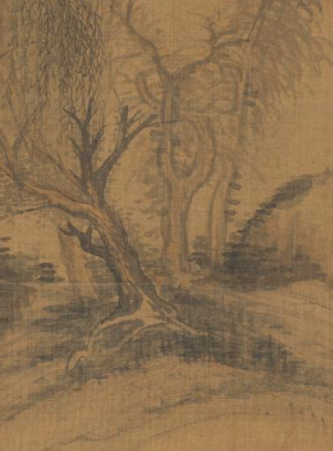本品规格为41.2 x 31.5 厘米。以浅褐绢为底,绘潇湘烟峦之景。右上题识,墨韵古朴。画面中,潇湘山水朦胧如烟,山峦层叠,烟柳垂丝,江舟静泊,以水墨皴染营造出悠远空灵的意境,尽显文人借潇湘写情、寄意山水的雅趣,是研究翟大坤山水画风的典型之作 。