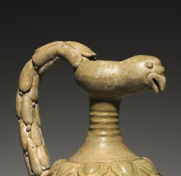 唐代青釉贴塑凤首执壶
