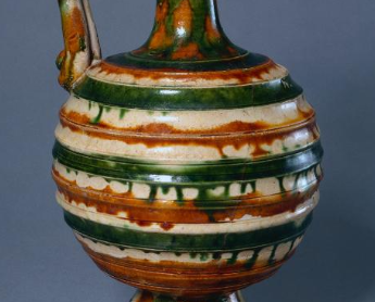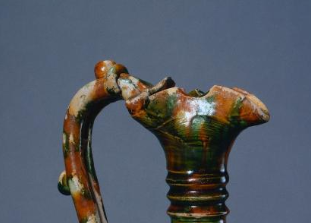 在唐代,饮酒之风盛行,社交宴会频繁, 三彩龙柄执壶常被用于盛酒和斟酒。它的造型设计合理, 龙形柄便于持握,壶口大小适中,方便控制酒水流出 ,能满足宴饮时的使用需求。无论是贵族家庭的奢华宴会, 还是文人雅士的诗酒雅集,这种执壶都能派上用场。