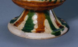 本品规格为直径13.5厘米,高度27.3厘米。以黄绿褐三色釉呈现。壶身呈束颈、鼓腹、高足造型,颈部纤细,腹部圆润。龙形柄蜿蜒连接口腹,龙首生动。器身施釉呈条纹状,色彩交融自然。虽有残损(壶口破损 ),仍显古朴华丽,体现唐代三彩工艺特色,是研究唐代陶瓷造型与装饰的实物,见证当时审美与制瓷技艺 。