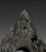 本品规格为直径9.9厘米,高度18.4厘米,盖子7.8*9.1厘米,容器11.3厘米。为青铜质地,历经岁月,呈古朴青绿色。炉体分炉盖、炉身、底座,炉盖作山峦状,雕刻精细,有峰谷、孔窍,可模拟仙山云雾缭绕之景;炉身圆润,饰有弦纹;底座为覆盘式,亦有雕刻。整体造型典雅,工艺精湛,是西汉熏香器具,体现当时对仙山文化的崇尚与青铜铸造水平,为研究汉代生活与艺术的重要实物 。