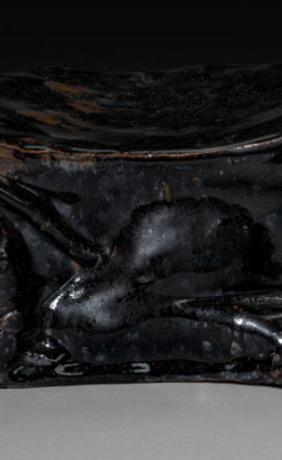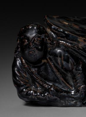 元代黑釉人物瑞兽形瓷枕