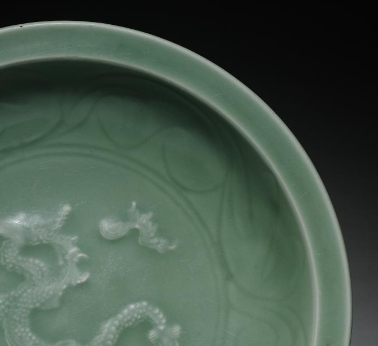 在元代时,作为实用餐具,可用来盛放菜肴、主食等。在家庭日常用餐场景中, 能够盛装各类家常菜品 ;而在贵族或富户举办的宴会里, 凭借其精美的龙纹装饰和温润的青釉色泽, 更适合盛放精致的佳肴, 提升宴会的规格与格调 。