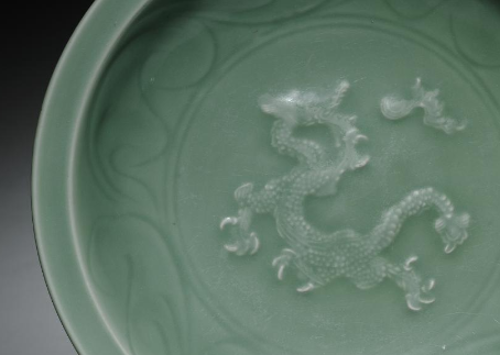 元代青釉贴塑龙纹盘