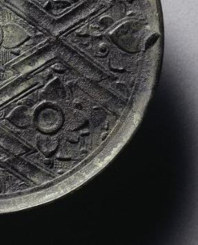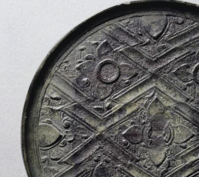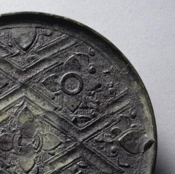 本品规格为直径11.4厘米,厚度0.4厘米。整体呈圆形,因岁月沉淀,表面呈现出古朴的青铜色泽与包浆。镜背以菱格纹为框架,线条硬朗规整,将镜面划分成有序的几何区域。菱格内,蟠螭纹蜿蜒穿梭,虽历经千年,仍可辨其灵动线条,似在游走,展现出战国时期青铜器纹饰的独特张力。中央区域或有独特装饰,与菱格、蟠螭纹相呼应,工艺精湛。