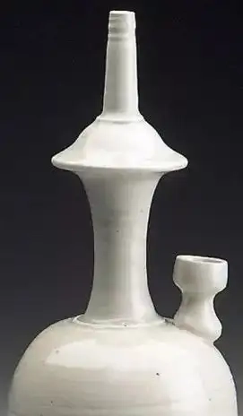 净瓶在北宋时期是一种较为常见的瓷器造型,多与佛教活动相关,常被用作佛门的供器,用于盛水等宗教仪式。北宋社会经济繁荣,文化昌盛,佛教在社会中有着广泛的影响,对佛教用品的需求也推动了定窑等窑口在相关瓷器造型和工艺上的发展。这件北宋定窑净瓶, 是北宋时期制瓷工艺与宗教文化相互交融的产物,反映了当时高超的制瓷技艺和独特的社会文化风貌。