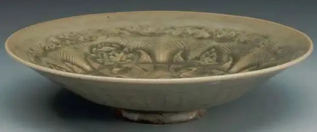 刻花工艺是耀州窑最具代表性的装饰手法之一,北宋耀州窑的刻花瓷器以其刚劲有力的线条、生动逼真的纹饰而闻名。在北宋,人们对瓷器的审美追求较高,耀州窑的刻花盘不仅具有实用价值,更是兼具艺术欣赏价值,反映了当时高超的制瓷水平和独特的艺术风格,是北宋瓷器文化的重要代表。