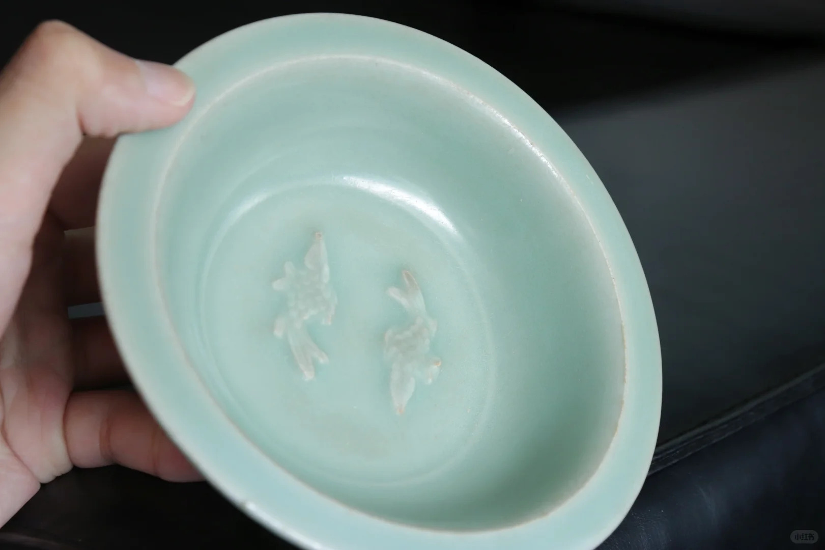 纹饰特点:最具特色的是洗的内底堆塑有两条栩栩如生的游鱼。两条鱼相对而置,形态灵动,鱼身的鳞片、鱼鳍、鱼尾等细节刻画得十分精细,仿佛在水中自由自在地游动。这种双鱼的装饰题材,不仅具有很强的装饰性,还蕴含着 “连年有余” 的美好寓意 。
