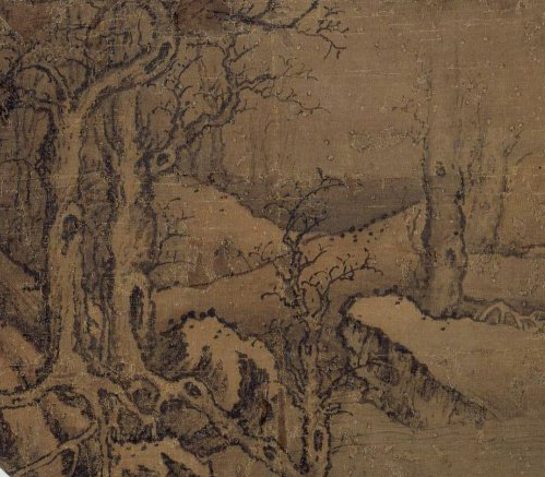 绘画技法:采用了北宋山水画典型的技法,以扎实的笔墨功底勾勒物象。在用笔上,线条刚劲有力,表现出树木的坚韧和坡石的厚重;在墨色运用上,浓淡相宜,通过墨色的变化表现出景物的层次和立体感。虽然画面尺幅不大,但画家对细节的刻画十分到位,体现了范宽对自然景物细致的观察力和高超的绘画技艺。