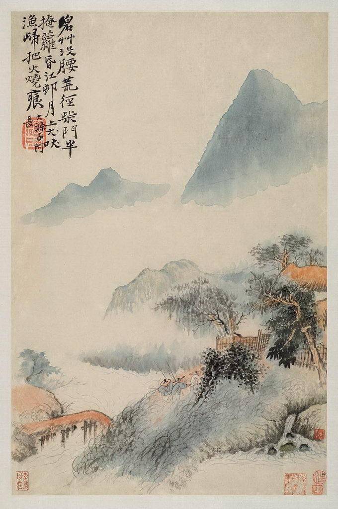绘画技法:石涛作画擅用笔墨,笔法灵活多变,线条或粗犷豪放,或细腻流畅。墨法上,浓淡干湿并用,通过巧妙的墨色变化表现出山水的层次、质感和光影效果。在构图上,他不拘泥于传统,敢于创新,常采用独特的视角和布局,使画面充满新奇感和张力。部分画作可能采用设色技法,色彩或淡雅清新,或鲜明艳丽,与水墨相互映衬,增强了画面的艺术感染力。