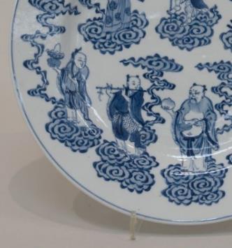 御窑厂受朝廷直接管控,不计成本改进工艺(如青花料提纯、分水皴技术),生产的八仙纹盘(多为宫廷赏赐或祭祀用)工艺精湛,成为民窑模仿的范本;清代商品经济繁荣,民间对日用陶瓷的需求激增,“八仙” 作为大众熟知的题材,兼具观赏性与吉祥寓意,成为民窑青花盘的主流纹饰之一,产量大、流传广(目前存世的清代八仙纹盘以民窑器为主,官窑器较少)。