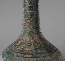 汉代青铜容器以 “生活用器” 为主(如长颈瓶、铜壶、铜鉴、铜灯),不再承担 “祭祀礼器” 功能,因此造型更注重 “实用性”(如长颈便于倾倒液体,鼓腹便于储物),纹饰也从 “神秘的饕餮纹、夔龙纹” 转向 “写实的狩猎纹、宴饮纹、农耕纹”,贴近社会生活。