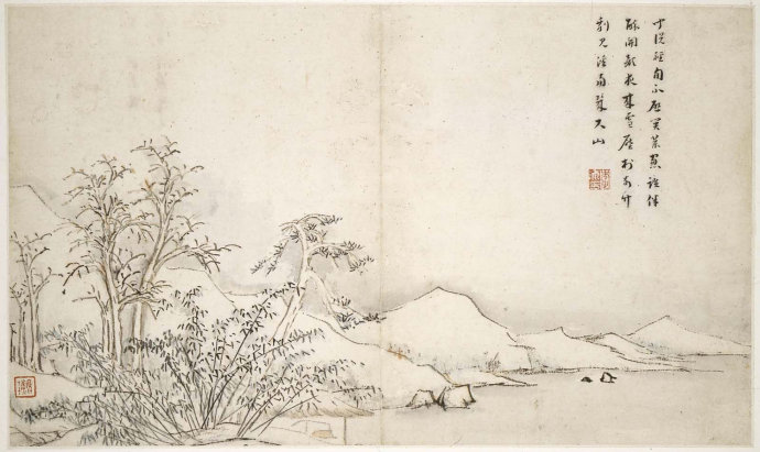 笔墨技法:李流芳的笔墨技法娴熟,用笔简洁流畅,线条富有变化,勾勒山石、树木轮廓时尽显功力。墨色运用上,浓淡相宜,通过墨色的深浅变化营造出远近、虚实的空间效果。比如,用淡墨描绘远处的山峦和云雾,用浓墨刻画近处的树木和房舍,使画面层次分明。画风兼具文人画的笔墨情趣和对自然景致的生动描绘,既有细腻的写实,又有写意的洒脱,展现出独特的艺术风格。