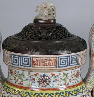 嘉庆早期,景德镇的制瓷水平基本上保持着乾隆朝的遗风,此炉的制作工艺体现了这一时期对前朝的继承。但自乾隆中后期开始,景德镇制瓷业走向衰落,嘉庆时期官窑瓷器传世品数量相对较少,不过粉彩佛教八宝纹鼎式炉等官窑器物仍保持着较高的制作水准。