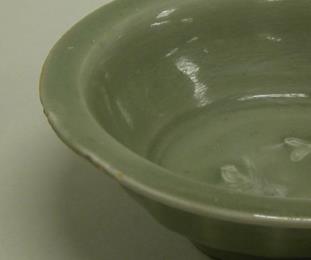 一般为敞口,宽平沿,弧腹,圈足。整体造型规整,线条流畅,给人一种端庄稳重之感。外壁多刻有凸菊瓣纹或莲瓣纹,瓣面较细,中脊挺拔,瓣面自中脊坡向两侧,莲瓣凸出部分略透黄白色,即所谓 “出筋”。洗心内塑贴或印贴两条游鱼,鱼纹清晰,摇鳍摆尾,栩栩如生,仿佛在水中嬉戏。