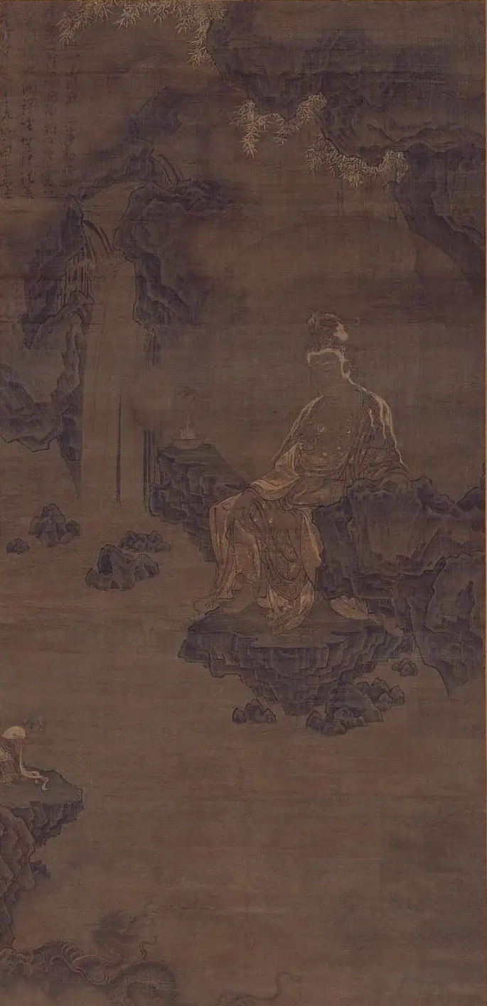 元代的佛教绘画继承了前代的传统,并融合了不同民族的艺术特色。画家们创作了大量以佛教人物为题材的作品,观音作为佛教中慈悲的象征,是绘画中常见的题材。这些佛教绘画作品不仅是宗教传播的载体,也反映了当时人们的精神信仰、审美观念以及社会文化风貌,对于研究元代宗教文化、绘画艺术的发展和民族文化融合具有重要的参考价值。