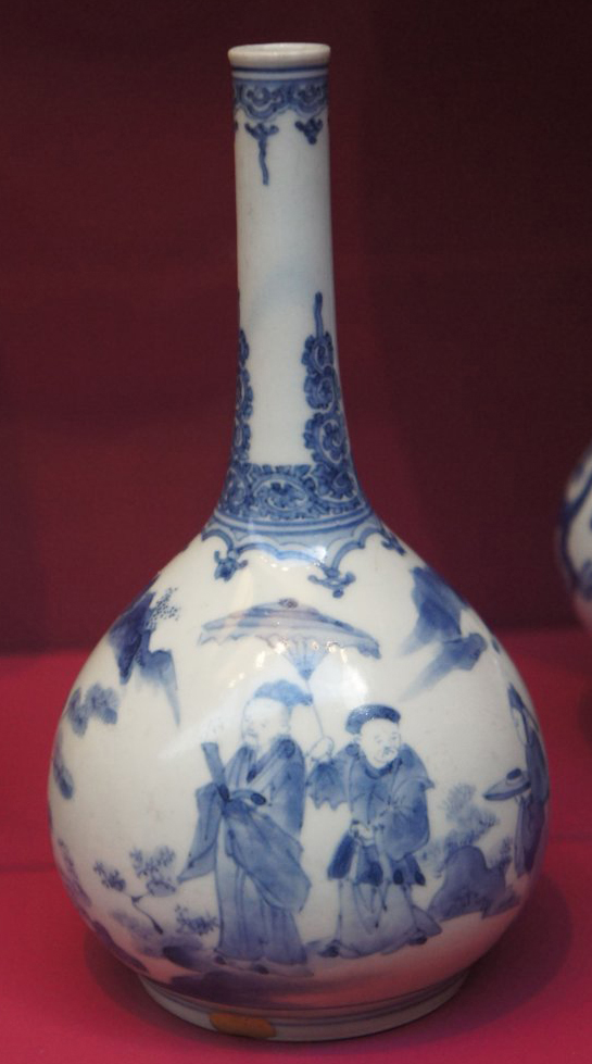 明清时期青花人物纹蒜头瓶
